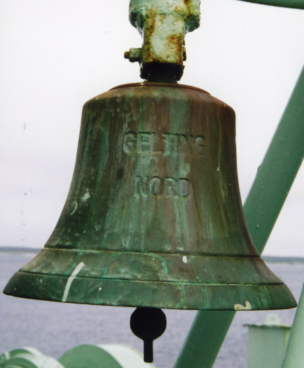 Above & below: The view from the forecastle (above) where the ship's bell dates from her 1980-1984 period as Gelting Nord. |
