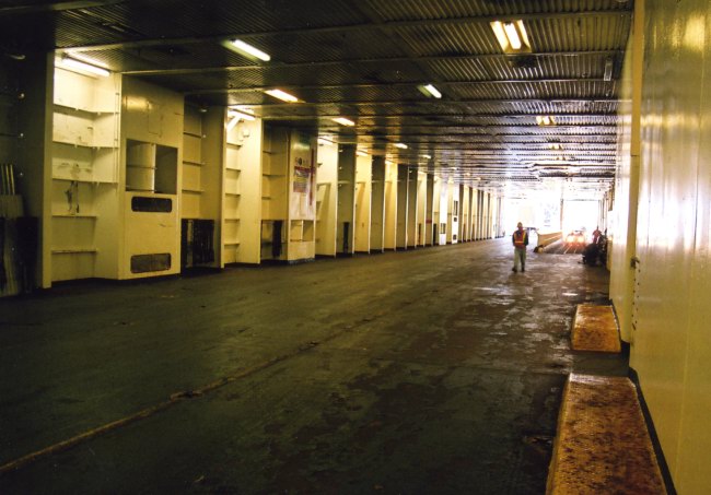 Above & below: Two views on the upper freight deck with its open area aft (below). |