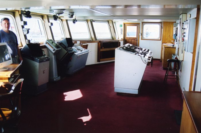 Above & below: The 'Voyageur's bridge and (below) the view from the starboard bridge wing. |