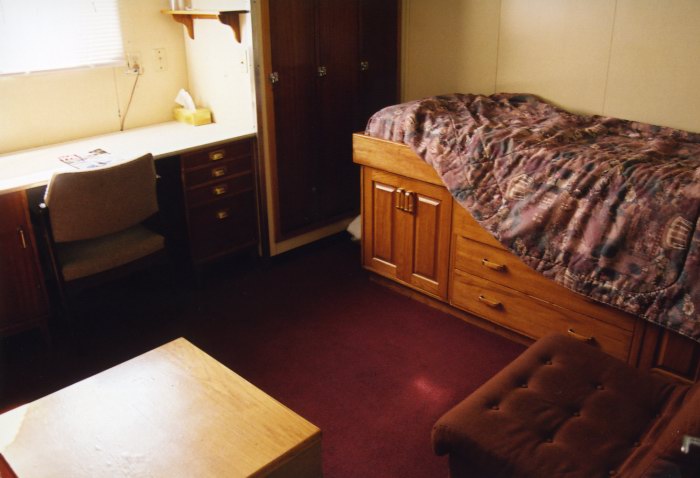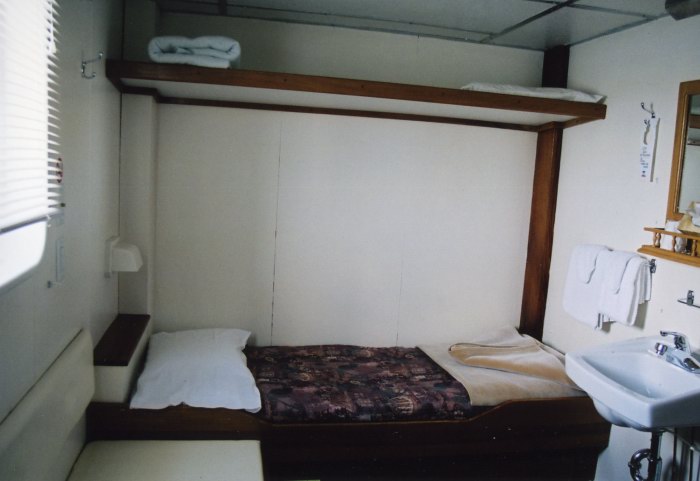 Above & below: A two-berth passenger cabin (above) and one of the senior officers' cabins (below). |