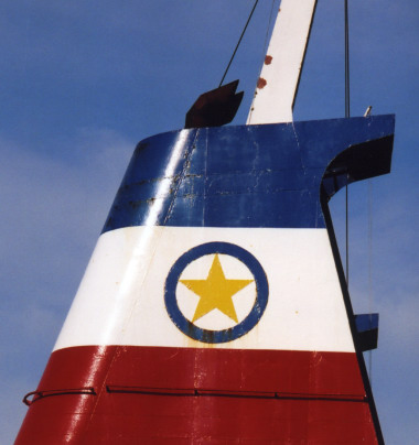 Above: It seemed appropriate to at least attempt to reproduce Lord Greenway's iconic image of one of the ship's funnels which graced the cover of Brian Haresnape's This is Sealink . At some stage the ship has received small additional vents to aid in the dispersal of fumes. |