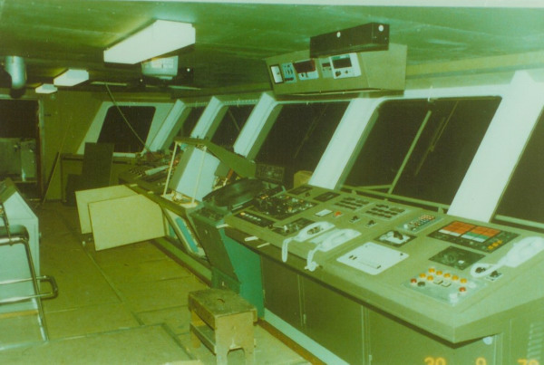 Above & below: The bridge of the brand-new Zenobia in 1979 (above) compared to that of the Trapezitza a decade later (below). (Picture below courtesy Roy Thornton Collection) |