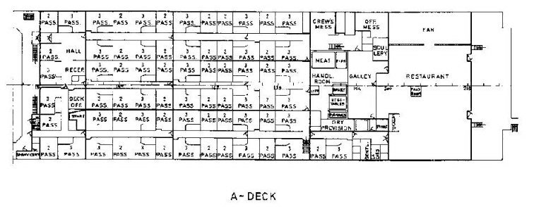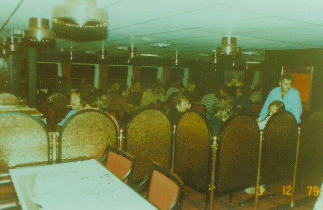 Above: Looking forward in the Zenobia's distinctive A-Deck restaurant area. |