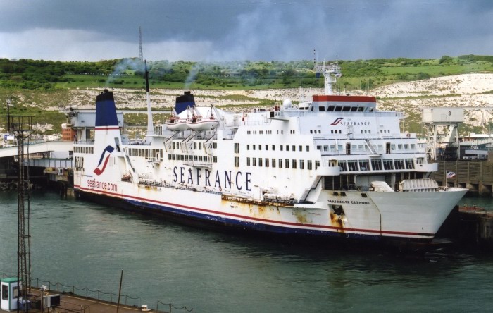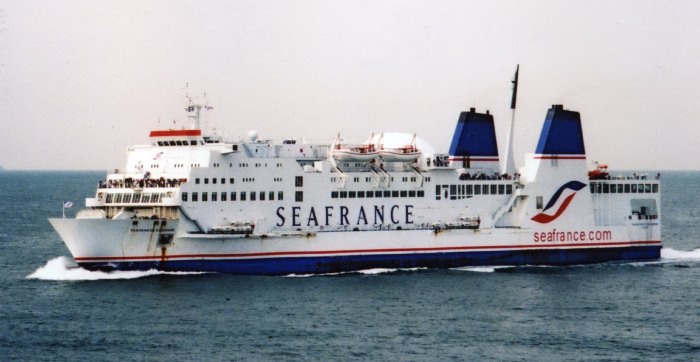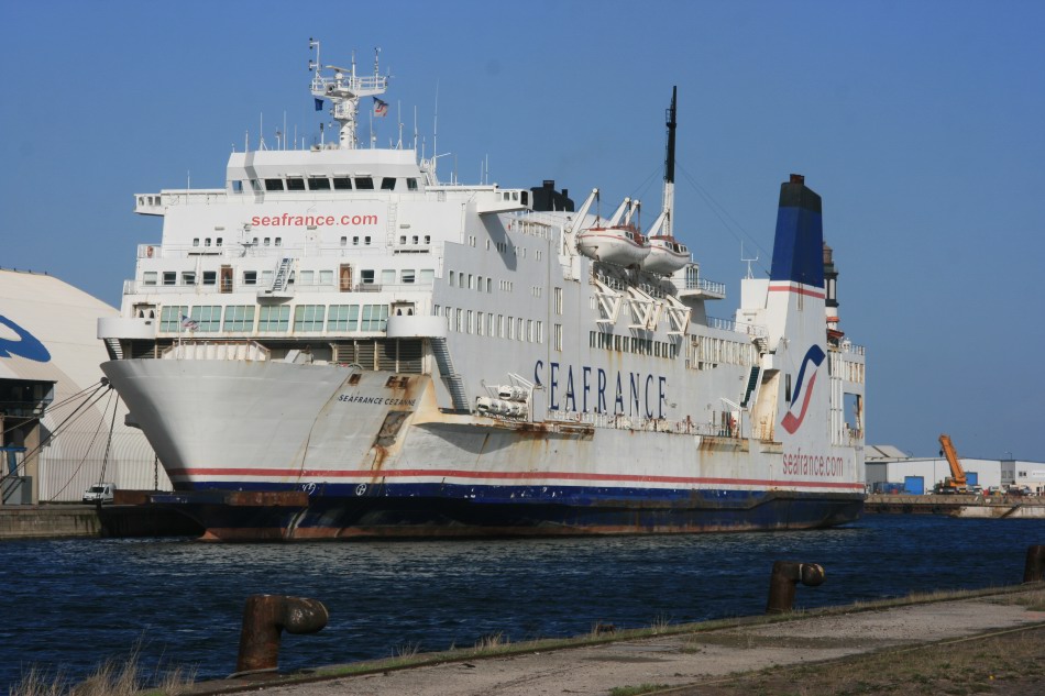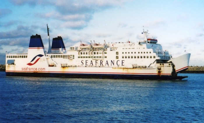 On 22 March 2000, the 'Cézanne' was holed on the port side at Dover in thick fog, later requiring attention at Dunkerque. Exactly one week later fleetmate Seafrance Monet (the company's 'spare' ship) was holed beneath the waterline when entering Calais and permanently withdrawn. New investment was forthcoming however and the introductions of the newbuilds Seafrance Rodin (2001) and Seafrance Berlioz (2005) pushed the 'Cézanne' down the company's pecking order. For much of 2005, the former Fiesta was thus relegated to freight-only duties alongside the 'NPC', the two new ships and the smaller 'Manet' headlining the passenger operations with the 'Renoir' in reserve. 2006 however saw a revision of the sailing schedule and the Seafrance Cézanne was returned to front-line operations as part of a six-ship passenger service. She was however in increasingly poor condition - unacceptably so given she was one of the primary passenger units - and in late 2008 the arrival of the Seafrance Moliere saw her relegated to freight only duties permanently. With Seafrance continuing to perform poorly financially, the ship was permanently withdrawn in early 2009, her final sailing being on 12 February. She moved to Dunkerque to lay up two days later. |