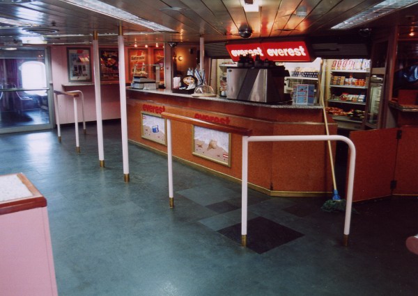 | BELOW: Latterly an at-sea branch of Everest, the former tea bar had once been 'Refreshers' and before that, 'Lifesavers' (seen on the Horsa in the mid-1980s). |