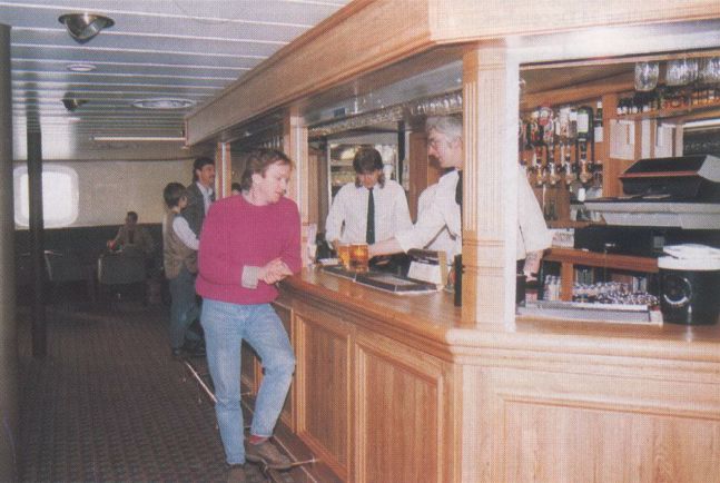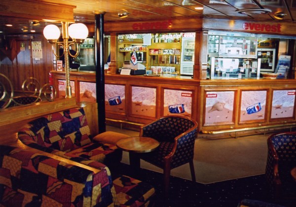 | BELOW: ...basically unchanged from the same area seen here on Hengist after the 1986 refit converted the bars into "English-style pubs" which also served hot food and bar snacks. Today one can sample one of Everest's classic "Sausage Pies" (sausage rolls). |