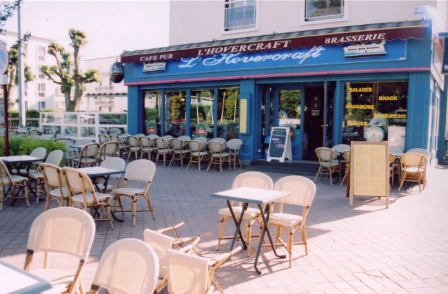| Below: The hovercraft themselves may have been gone for more than five years, but Calaisians have been reluctant to say farewell to them. This is L'Hovercraft Bar & Brasserie in June 2005. |