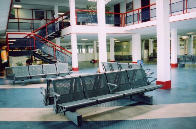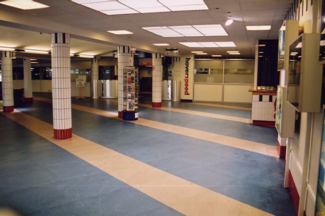 | Above & below: Two views of the check-in and information desks in the main entrance lobby. These pictures were actually taken in December 2005 after the end of Hoverspeed's operations. |