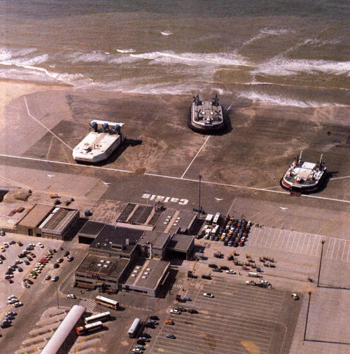 | Above: The hoverport's landing pad served in the post-hovercraft years as a marshalling area for vehicles waiting to board the SeaCats. |