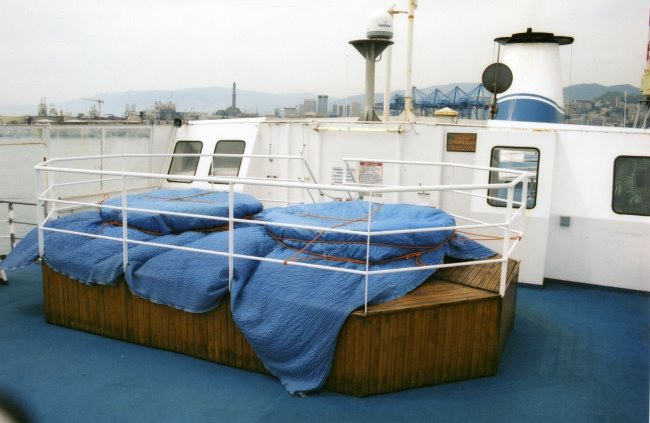 Leaving the Scotia Prince at about 4.30 we headed back to the ferry terminal to reclaim our bags and board our evening departure to Olbia on the Janas. At this stage Brucey left us – his plans couldn’t accommodate the second part of the trip and we last saw him marching off trying to track down a vessel to take him on a harbour cruise. The pleasant walk from shipyard to Traghetti Terminal took about half an hour and after a quick detour to the terminal’s supermarket for water and other supplies, we made our way to our ship. [continued...] |