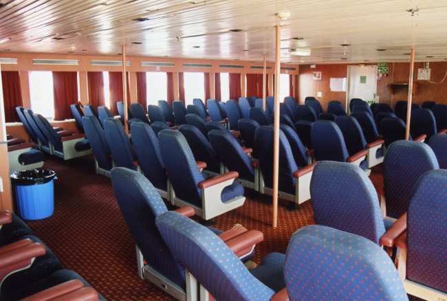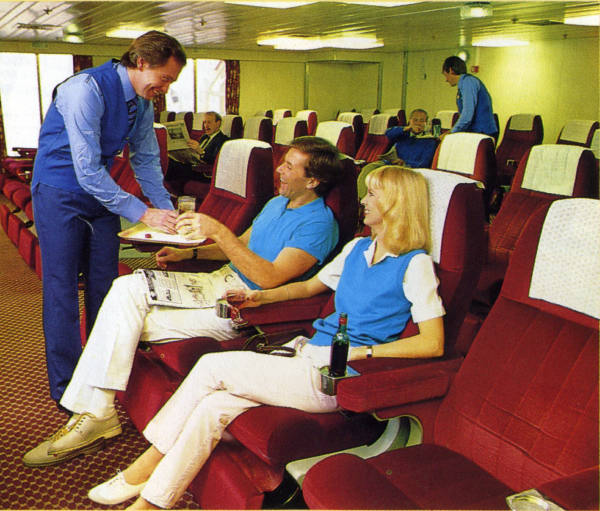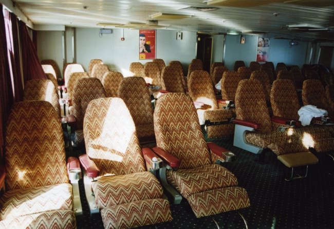 | Above and below: The new Club Class lounges on the Super Vikings (above) were Townsend Thoresen's premium service in the 1980s. The same lounge is seen on the Oujda in 2006 (below). |