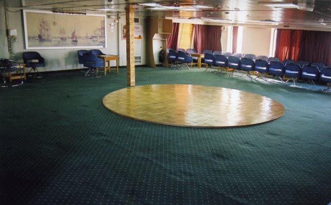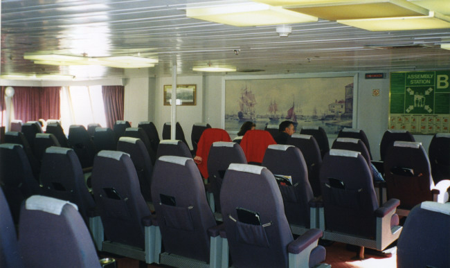 | Above and below: The forward section of the former Club Class lounge has had the reclining seats removed and a dance floor installed. The picture below shows the space on the ship as Pride of Hampshire in 2002. |