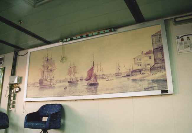 | Above: This painting entitled 'Old Portsmouth' remains at the forward end. |