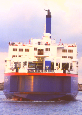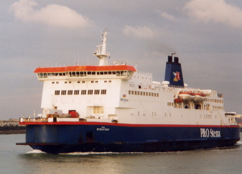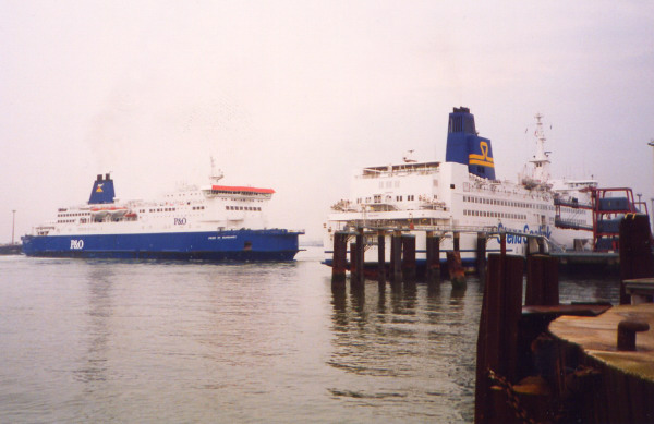 Whatever the reasons for the move, the Pride of Burgundy was delivered in 1993 and completed P&O's five-ship shuttle service which cemented market leadership on the Dover Strait. Little changed until the merger with Stena in 1997, thereafter the ship being named P&OSL Burgundy but remaining on the Calais route. After P&O took full control of P&O Stena Line, the ship regained her original name in 2002, yet just one year later as part of a batch of P&O rationalisations, the 'Burgundy' was withdrawn from passenger service and put to use as a freighter only (assuming the role previously filled by her half-sister, European Seaway). A further revision of the situation was made in late 2004, and the 'Seaway' was recalled to resume freight duties with Pride of Burgundy reverting to passenger mode. |