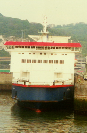 The final ship of a four-vessel order placed by P&O European Ferries in 1989, the P&OSL Burgundy should have been delivered, like her sisters, as a "super freighter" for Dover-Zeebrugge operations. Instead during construction, the plans changed and the vessel was completed with a full complement of passenger accomodation - the possibility for such a transformation had been built into the design during the planning stages. This was perhaps doubly fortuitous - on the one hand the Dover-Calais service needed additional capacity at a time when competition was breakneck, whilst on the other it could be speculated that the Zeebrugge route did not need the additional capacity the fourth ship of the class would provide.