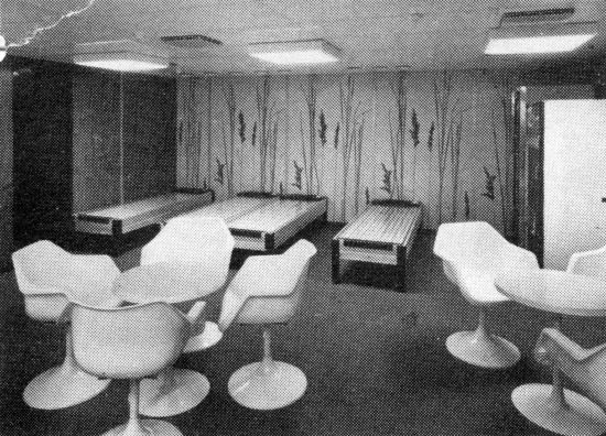 | Above: Beneath the vehicle deck, the Kronprinsessan Victoria entered service with a pair of saunas , as pictured; these were later taken out of passenger use. The remainder of the accomodation on this level comprised four-berth cabins without facilities - in later Stena Line service, shower units were added to the Stena Europe, but no equivalent modifications were ever carried out to the ship's sister. |