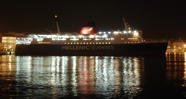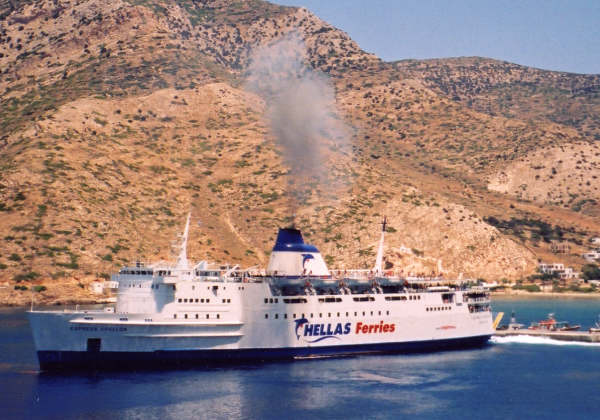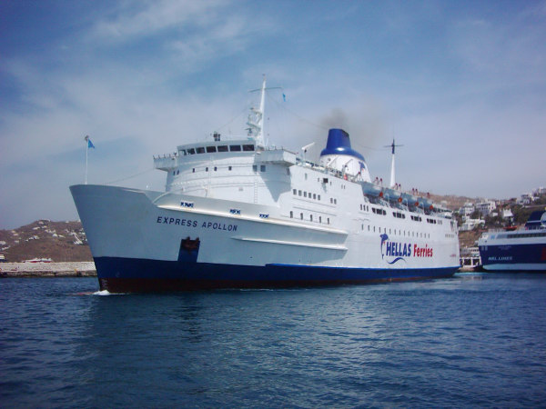 The Hellas Ferries honeymoon was short-lived however. The September 2000 sinking of the Express Samina triggered a huge review of domestic ferry operations and the new combine emerged with a seriously tarnished reputation. Meanwhile, the company was facing major problems from rivals Blue Star Ferries (ex-Strintzis Lines) whose fleet of new, fast conventional ferries were undermining Hellas' position on most of the key routes. With investment not forthcoming from now wary backers the company was unable to reply with newbuildings of its own and the hard and expensively-won dominance was lost as the fleet gradually contracted in size. Express Apollon was one of the ships which was retained by the company, and continued to operate out of Piraeus until a transfer to Rafina-Mykonos operations for the Summer 2004 season. Whether the ship would be retained for further service in 2005 appeared doubtful for a period, but eventually the ship emerged in late June in the new livery of her owners, who had rebranded as Hellenic Seaways. The ship spent the Summer operating in concert with former Dieppe consort Express Santorini (ex-Chartres) along the Piraeus-Paros-Santorini chain and remained in service into the Winter. For Summer 2006 however the Express Apollon was deemed surplus to requirements and for much of the season was to be found lying in the outer harbour at Piraeus.