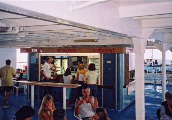 | Below: A standard feature on most Greek ferries is the deck bar, and the Express Apollon is no exception - this is located aft on A Deck and in 2003 was branded under the Everest name. |