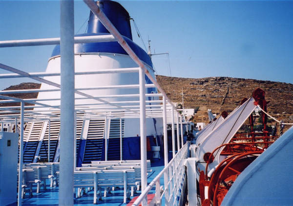 | Below: Looking aft towards the classic Sealink funnel on Express Apollon in 2003. |