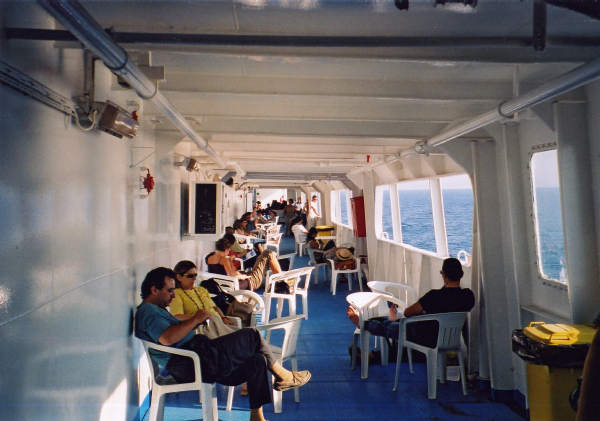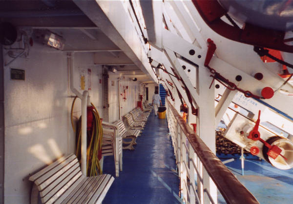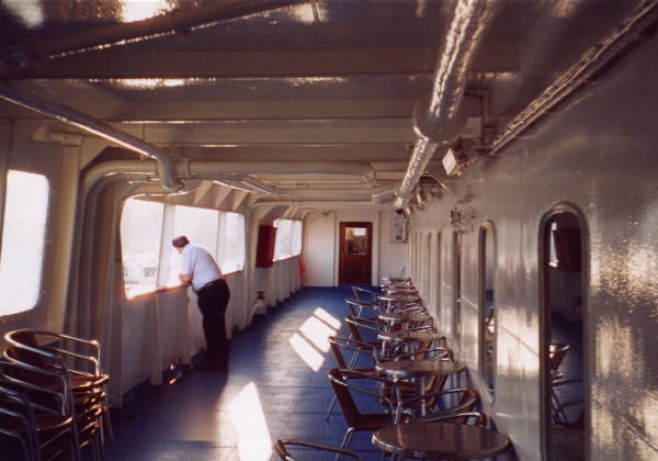 | Below: The port-side enclosed promenade on A Deck aboard Express Apollon. This is the view looking aft in 2003. |